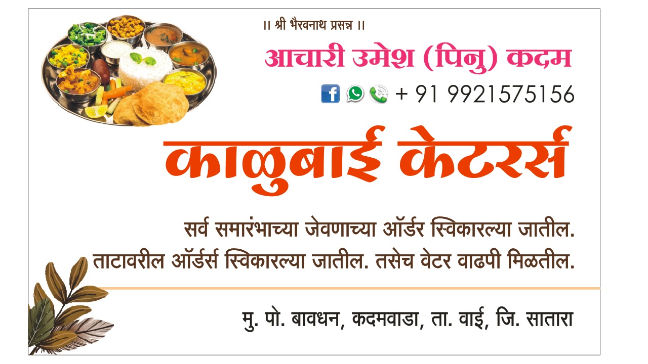 ЁЯеШ ЁЯОВ рд╕рд░реНрд╡ рд╕рдорд╛рд░рдВрднрд╛рдЪреНрдпрд╛ рдЬреЗрд╡рдгрд╛рдЪреНрдпрд╛ рдСрд░реНрдбрд░ рд╕реНрд╡реАрдХрд╛рд░рд▓реНрдпрд╛ рдЬрд╛рддреАрд▓. ЁЯеШ рддрд╛рдЯрд╛рд╡рд░реАрд▓ рдСрд░реНрдбрд░ рд╕реНрд╡реАрдХрд╛рд░рд▓реНрдпрд╛ рдЬрд╛рддреАрд▓. ЁЯеШ рддрд╕реЗрдЪ рд╡реЗрдЯрд░ рд╡рд╛рдврдкреА рдорд┐рд│рддреАрд▓. ЁЯУ▓9921575156 рдЙрдореЗрд╢ рдкрд┐рдиреВ рдХрджрдо ЁЯУ▓ 9503738850 рд░рд╡рд┐ рджреЗрд╡рдХрд╛рддреЗ ЁЯУ▓ 9503904226, рд░рд┐рддреЗрд╢ рд╢рд┐рдВрджреЗ ЁЯУ▓ 7030677848