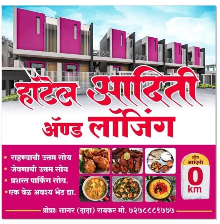 हॉटेल आदिती अँड लॉजिंग. प्रोप्रा सागर (दादा) रायकर. व्हेज नॉनव्हेज फॅमिली रेस्टॉरंट इंदापूर, जिल्हा पुणे