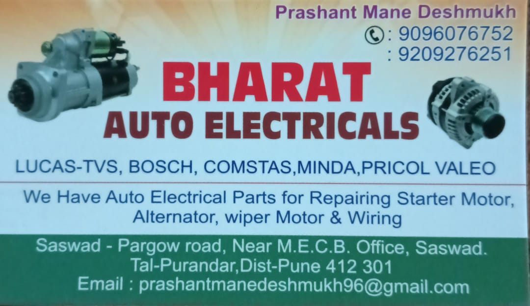 आमच्याकडे सर्व नामांकित आणि ब्रांडेड कंपन्यांचे इलेक्ट्रिक पार्ट्स रिपेरिंग विक्री आणि दुरुस्ती योग्य दरात केली जाईल. lucas -tvs, bosch, comstar,minda, precol, valeo