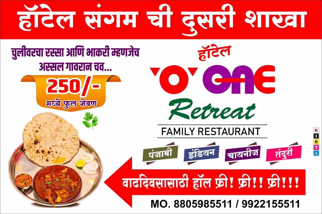 🏨 हॉटेल संगम 🥘 व्हेज नॉनव्हेज 🍗 🍻बार & रेस्टॉरंट 📍 वरुडा रोड चौक , धाराशिव 🏨 हॉटेल O - ONE RETREAT 📲9922155511 📲8805985511