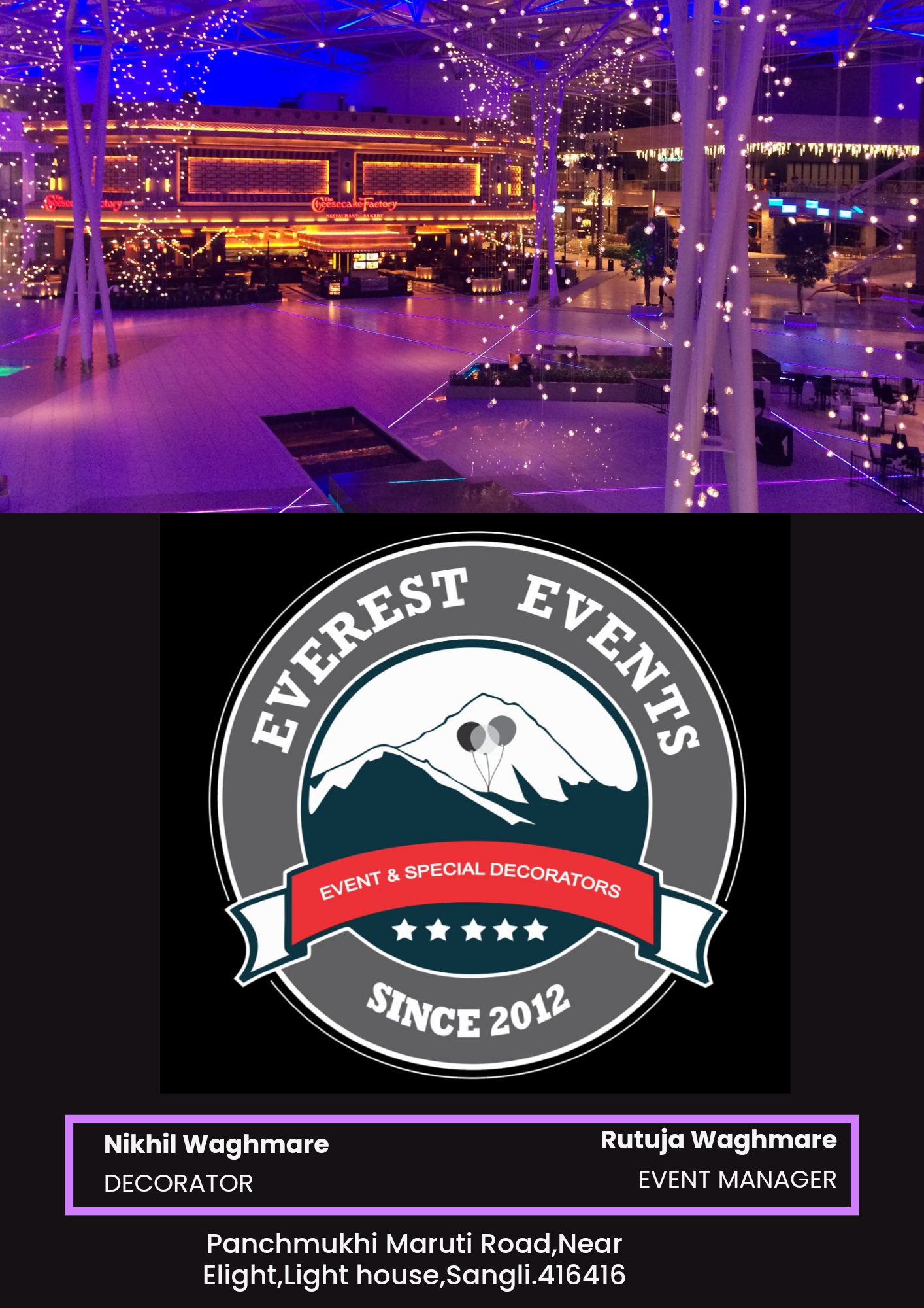 💐सजवा आपले अनमोल क्षण..एव्हरेस्ट इव्हेंटस सोबत.💐 मंडप, VIP सोफा, चेयर, गोल टेबल, चौकोनी टेबल, मॅटिंग,LED लाइट,मेटल लाइट, साउंड सिस्टम,गायन,वादन,कोल्ड फायर,ड्राई आईस, पेपर शॉट, रांगोली, यज्ञ ,हार, भडजी, घोडा, डोली, बॅन्जो, ऑफिस, होम, शोरूम, शॉप, हॉटेल, इत्यादी डेकोरेशन केले जाईल. 🥁🎷🎺🎸🎤🎧🪕🕺🏻💃🏻🎇🌠🎆